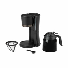 Cafetera de goteo de 2 a 12 tazas. Capacidad 1 L. Soporte de filtro suspendido con asa. Filtro permanente extraíble y lavable. Cucharilla dosificadora.Placa calorífica antiadherente. Jarra con sistema antigoteo. Jarra té