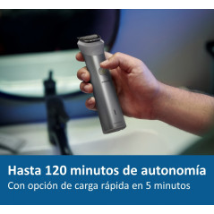 Recortadora Multifunción (All in One) S5000 | 12 en 1; Cara (Recortador de detalles) + Pelo + Cuerpo (Afeitadora corporal), Cuchillas metálicas autoafilables; Tecnología BeardSense; Peine ajustable 2x; 14 ajustes de longitud: 0,5 - 16 mm; 120 min de auto