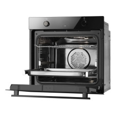 Horno Multifunción | Cristal Negro | Display Control con mandos Push Pull | 77 Litros con 6 niveles de guías laterales | 11 Funciones y Programa Pizza | Calentamiento Rapido 150 °C en 3 min | Supergrill | 3 cristales | 2 Guías telescópicas con sistema
