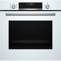 HBG536EW4, Horno, Multifunción, A+, Integrable, 60cm., 71 l., 8 F., Asistente de limpieza con agua, Ap. Abatible, Cristal blanco, AirFry, Mandos ocultables con display, Gourmet 10 recetas, Railes 1 nivel, Temperatura en Display, SoftMove